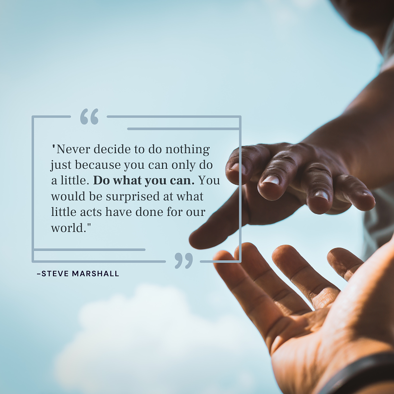 Do What You Can - Steve Marshall Quotes & Inspiration October 25, 2025 Comments 0 {:like=>"Like", :liked=>"Liked", :likes_html=>{:one=>"1 <span class='like-text'>like</span>", :other=>"%{count} <span class='like-text'>likes</span>"}, :index=>{:more_likes=>{:one=>"And one more", :other=>"And %{count} more"}}} 0 Jeanne is on vacation this week, but she's been wondering.....what if we made kindness go viral....one act of kindness at a time. "Never decide to do nothing just because…