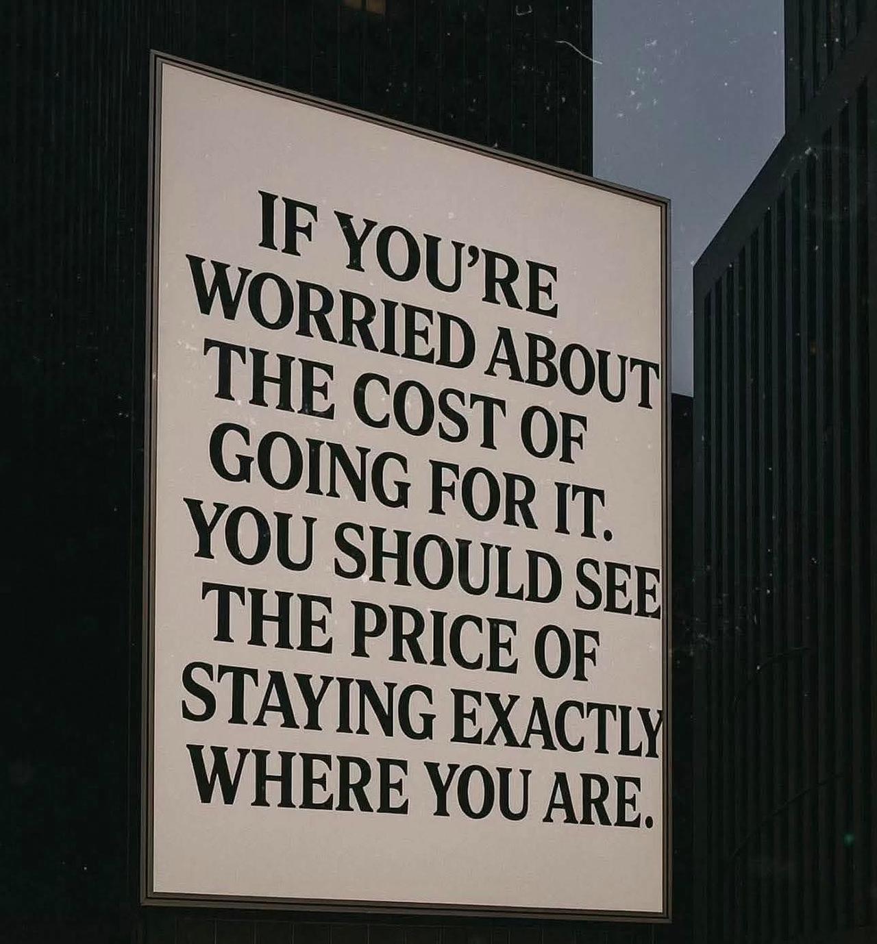 If you're worried about the cost of going for it, you should see the price of staying exactly where you are.